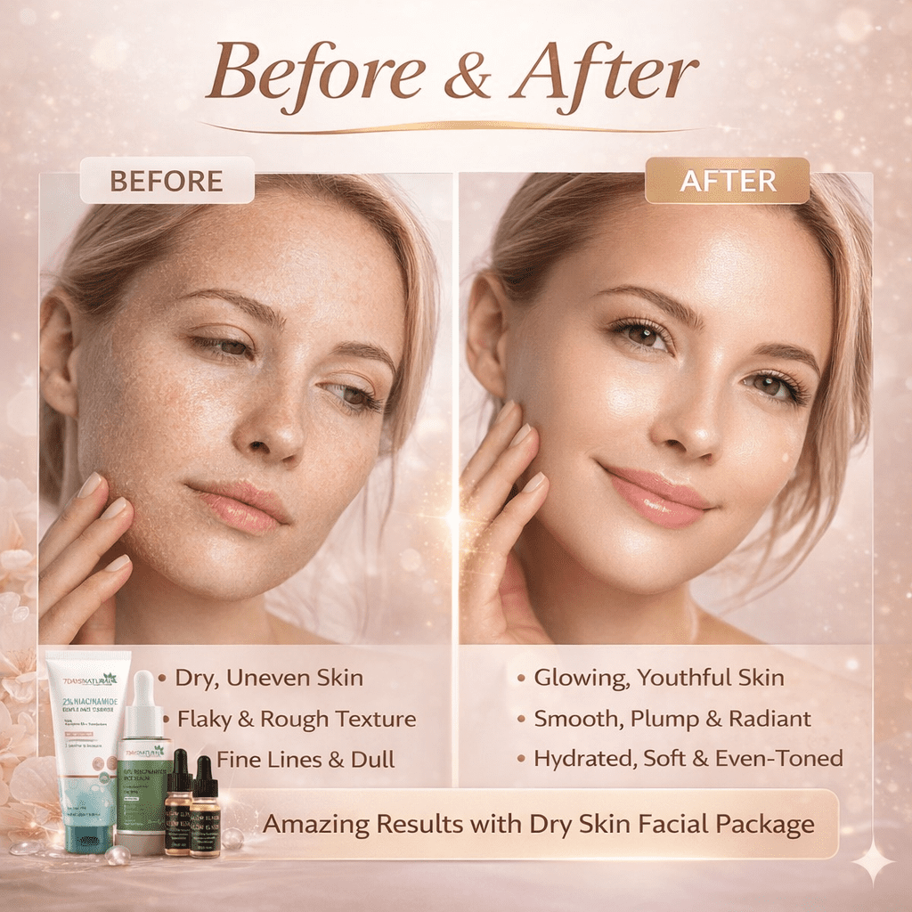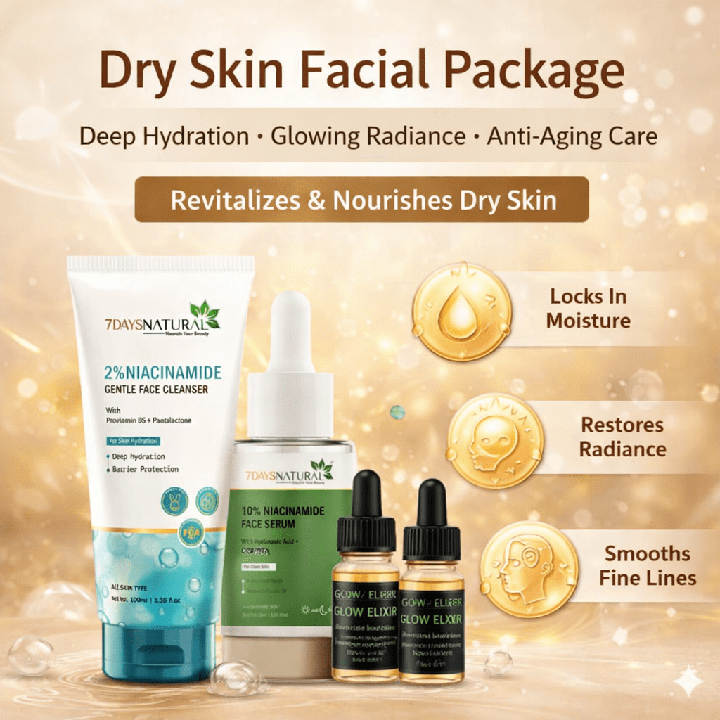 Say goodbye to dry, dull, and tired-looking skin. Our Dry Skin Facial Package is a complete at-home facial routine designed to deeply nourish, restore moisture, and bring back your skin’s natural glow. Specially curated for dry, flaky, and dehydrated skin, this pack works from cleansing to nourishment for visible results in just a few weeks.